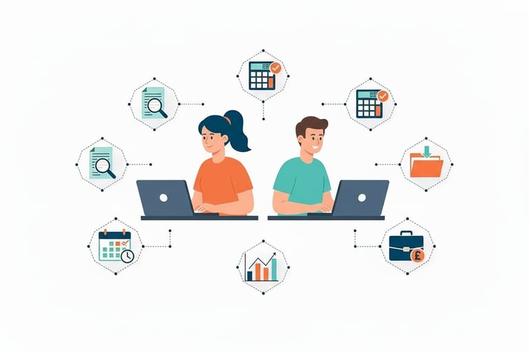We support sole traders, limited companies, partnerships, LLPs, contractors and small businesses nationwide. Our services include company accounts and personal tax returns, VAT returns, online bookkeeping, payroll and ongoing advisory support, all structured to scale with your business.