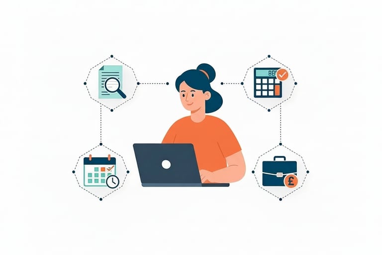 We support sole traders, limited companies, partnerships, LLPs, contractors and small businesses across the UK. Our services include statutory accounts, tax returns, VAT, online bookkeeping, payroll and ongoing advisory support — all delivered with a proactive, director-level approach.